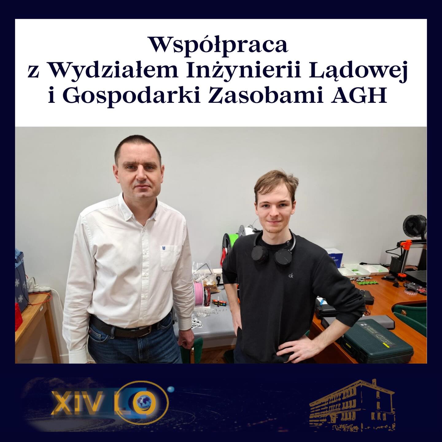 Pani Dyrektor Anna Rymaszewska podziękowała również Panu dr inż. Rafałowi Łuczakowi oraz Panu dr inż. Piotrowi Życzkowskiemu z Wydziału Inżynierii Lądowej i Gospodarki Zasobami Akademii Górniczo-Hutniczej w Krakowie, za wykonanie wraz z uczniami XIV LO - Dawidem Łuczyckim oraz Lesławem Barańskim projektu technicznego do przeprowadzenia rundy finałowej.