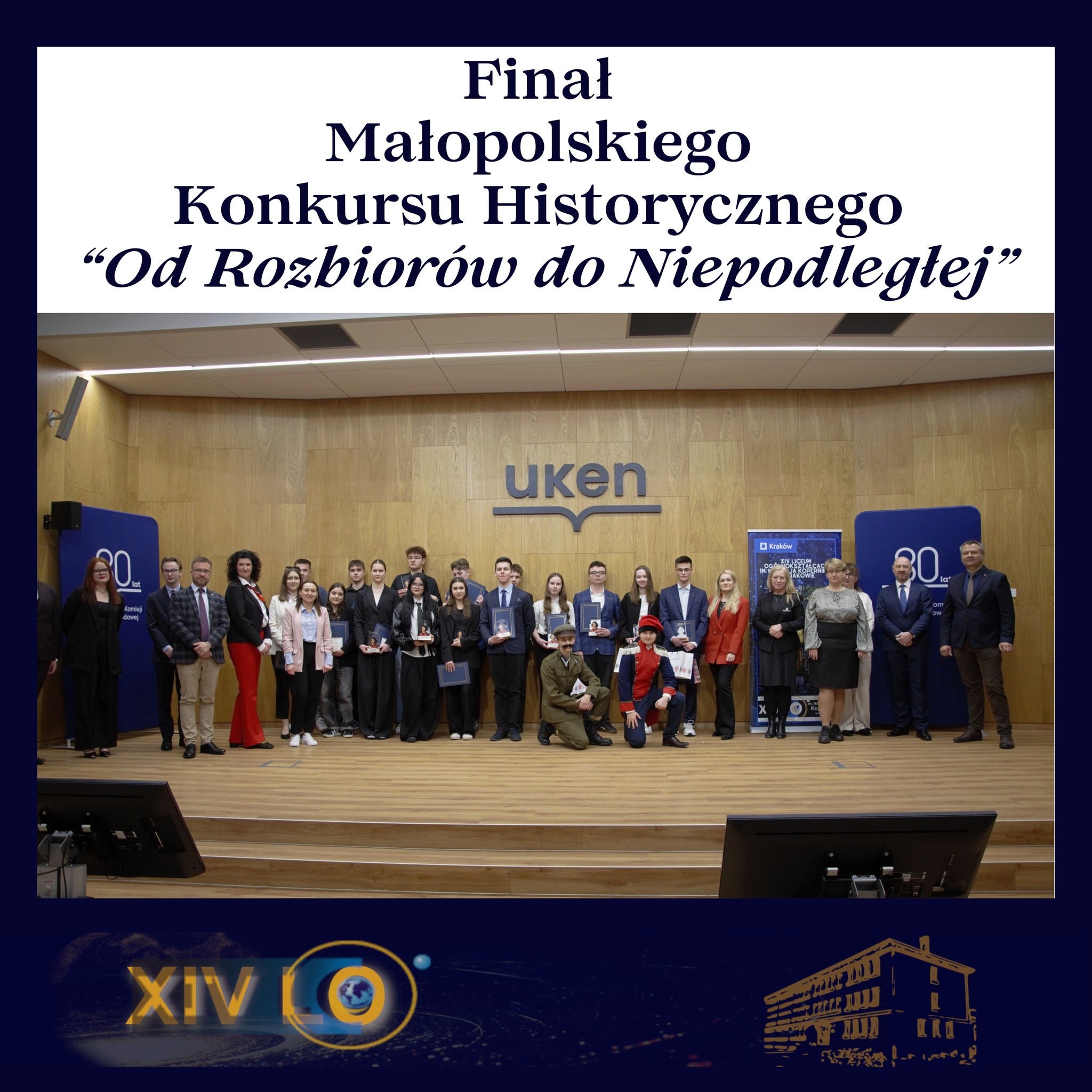 24 marca 2026 roku w Auli Głównej Uniwersytetu Komisji Edukacji Narodowej w Krakowie odbył się finał I Edycji Małopolskiego Konkursu Historycznego "Od Rozbiorów do Niepodległej", zorganizowanego przez Uniwersytet Komisji Edukacji Narodowej w Krakowie oraz XIV Liceum Ogólnokształcące im. Mikołaja Kopernika w Krakowie, pod patronatem Małopolskiego Kuratora Oświaty, Marszałka Województwa Małopolskiego, Prezydenta Miasta Krakowa Aleksander Miszalski, Młodzieżowa Rada Krakowa, Rada Dzielnicy IV Prądnik Biały. 🎓🇵🇱